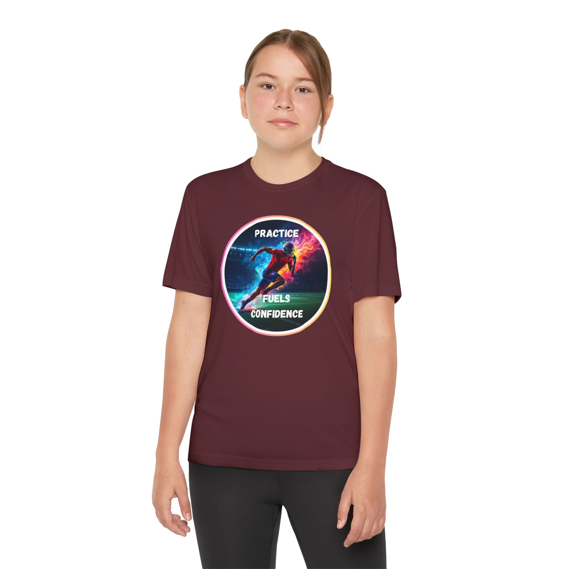 PRACTICE FUELS CONFIDENCE - Youth Athletic T-Shirt, Motivational Practice Tee for Young Athletes, Sports Team Gear, Training Apparel, Gift for Runners